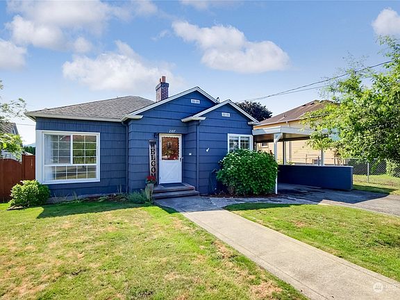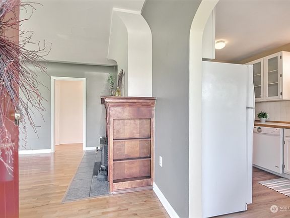 You will immediately fall in love with this quintesential downtown Enumclaw home! Arched entry and doorways, coved ceilings, charming built in shelves & nooks. Stunning wood burning fireplace is the focal point of the living room with beautiful hardwood floors. Light and bright country kitchen with glass front cabinets, eating nook with lots of natural light. Updated vinyl windows throughout the home. Backyard with large patio is perfect for outdoor entertaining. Fully fenced backyard with gate access, fire pit area, outbuilding for added yard equiptment storage. One car attached carport and one car attached garage for parking/storage. Just blocks to downtown restaurants, breweries, shopping Cole Street activities.