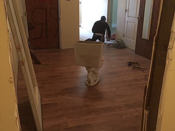 this home is MOVE IN READY and has been completely remodeled and is finished, the pictures posted are older pictures showing the remodeling process. No carpet in the home, all natural and lament hardwood flooring with tile in the bathroom floor. Very spacious with tall ceilings. Has a front and side door. could be used as a 3bedroom. Has new water heater. Don't miss this opportunity. Fenced in backyard and front yard. $50 late fee