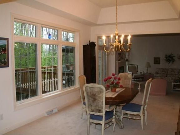 This Open-concept luxury 2BR/2BA Ranch w/great floor plan features main floor living w/Sunroom, Den/Office and extensive Master Suite. Vaulted and tray ceilings, Birch hardwood floors, walls of windows. Corian Kitche w/breakfast rm, plus a dramatic Great Rm w/cath ceiling, fireplace and wonderful views. Patio and deck w/private exposures. Now add a partially exposed lower level, a wooded lot and an outstanding location!