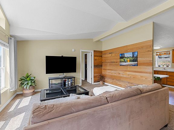 The manufactured home features 4 bedrooms, making it an excellent choice for families or those who need a home office.The primary bedroom is located on one side of the house, providing separation from the three additional bedrooms. A vaulted ceiling and large windows in the main living space provide lots of natural light. This home has recently received a fresh coat of exterior and interior paint. The property also boasts breathtaking sunset views of the Cascade Mountains.