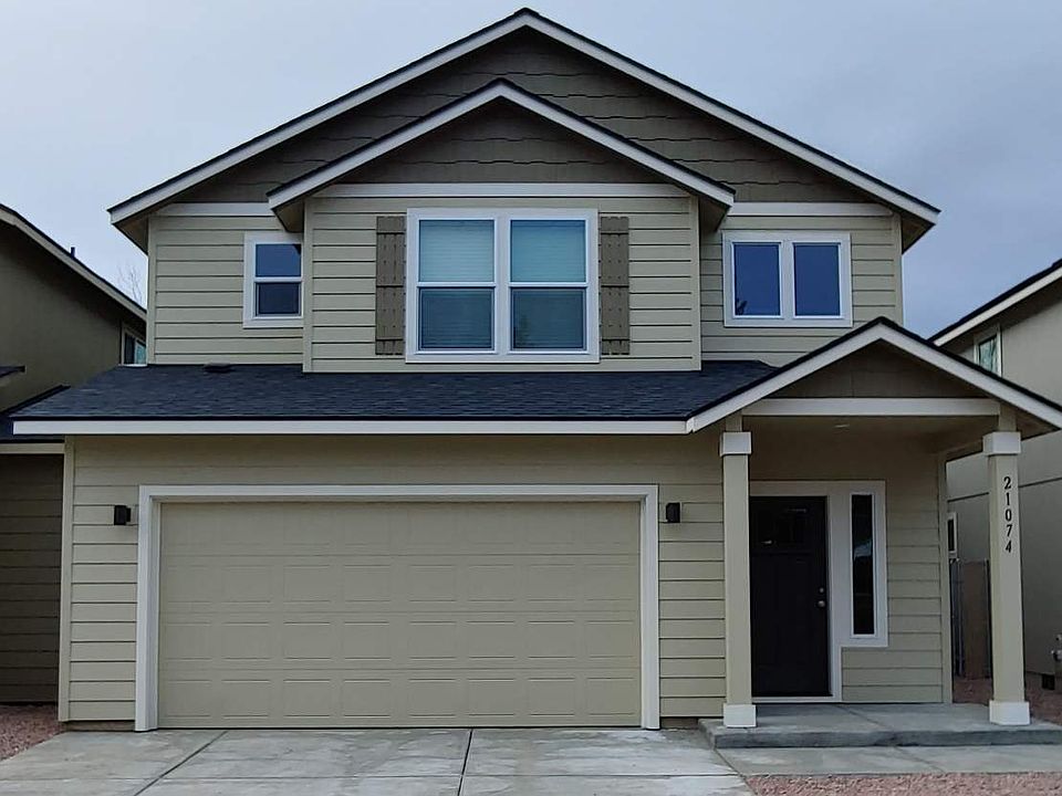 Beautiful new 1743 sq ft home for lease! br br New 3 bedroom, 2.5 bath home with open floor plan and numerous upgrades. br br li Tile plank flooring and nine foot ceilings throughout the entire lower level. br /li li Great room with 60" ceiling fan and gas fireplace. Recessed LED lighting. br /li li Upgraded stainless appliances with five-burner gas range/convection oven and French door refrigerator. br /li li Upgraded cabinetry with quartz countertops throughout the home. Undercabinet LED lighting. br /li li Built in desk and pantry. Large upstairs utility room with laundry sink and additional storage. br /li li master bedroom, 60" ceiling fan, walk-in master closet, double sink and tile shower. br /li li Generous second bath between smaller bedrooms with shower and toilet in a separate room. br /li li covered rear patio, covered entrance, and private drive. br /li li 530 sq ft garage with 50 amp 220V outlet suitable for plug-in vehicle and extra-quiet wifi opener (access remotely with a cell phone). br /li li Solar system for free clean electricity (just the minimum Pacific Power connect charge). br /li li wifi thermostat (Alexa and cell phone options), high-efficiency gas forced-air heat, central air conditioning. br /li li Gas water heater with recirculating hot water pump and timer (instant hot water and saves water). br /li li Low maintenance high desert landscape saves time and water expenses. br /li li Short walk to Pilot Butte with only one road crossing. /li br br Close to the East Bend Library (next door), Costco, Bear Creek Elementary School, Pilot Butte Middle School, St. Charles hospital and the medical community, etc. br br One year lease $2940 per month after discounts (see lease agreement). First month and $3000 refundable deposit to move in. br br Feel free to drive by to view the location. There is a tenant living in the home currently so please do not disturb. br br I work nights and so I am not easy to get hold of. Email and texts work best. Application available only after viewing the home in person. br br I am a local small landlord and not a broker. Please do not flag this ad without emailing me. Thanks!