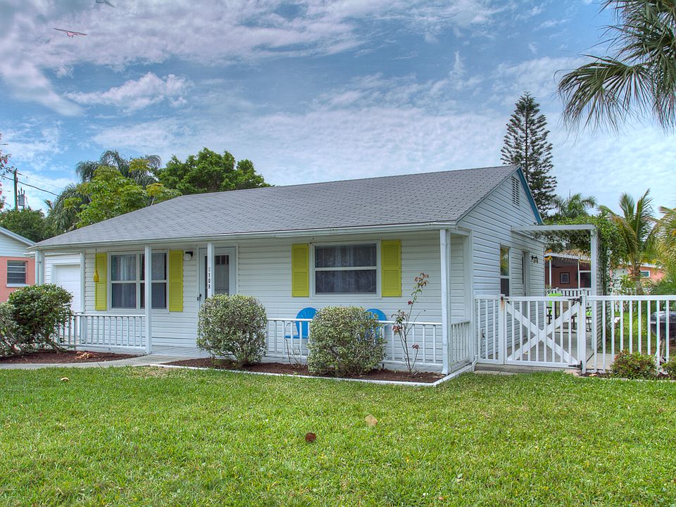 A charming Florida coastal cottage with water views , shared deeded boat slip/dock, weekly rentals, a brand new heated pool and much more. From the moment you step onto the front porch of this cute cottage you can tell this property has been very well maintained by current owner. It is just what you have been seeking in an island beach cottage. This home is perfect as a full time residence, second home, or investment property. The home features a new roof, new ac, new wood kitchen cabinets, all new kitchen appliances, kitchen floor, and brand new paint throughout. In addition it offers a new heated pool with spa, waterfall, swim jet, new lush landscape, pool deck, fencing, and a new shed with electricity for extra storage all situated on a large lot that is 75x100 feet.