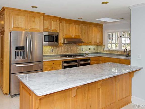 Price reduced $25,000! Updated home with remodeled kitchen w/NEW stainless Kitchen-Aid double ovens and dishwasher, French-door refrigerator, tile backsplash, marble counters. Elegant master addition w/trey ceiling,sitting room, 2 custom closets and well-appointed bath. One wing of the home's main level could serve as an in-law suite. 2nd floor suite w/priv bath.Lush landscaping.