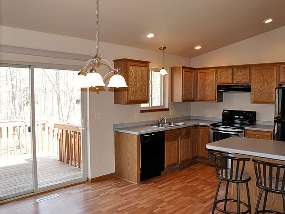 This four bedroom, two bath home is located in a quiet residential neighborhood in close proximity to DC Everest School, St Clares Hospital, Weston YMCA and Gaska Park public walking paths. This home features an open floor plan with vaulted ceilings offering a sunny, bright kitchen and dining area with hardwood floors, oak cabinets, breakfast bar and a convenient pantry. Also included are stainless steel stove, dishwasher, refrigerator and microwave. You will enjoy relaxing on your deck off of the dining room over-looking a spacious, wooded backyard. There is new carpeting throughout the home and many rooms are newly painted. There are two bedrooms on the upper level including the master bedroom with walk-in closet. The lower-level living area offers family room, two bedrooms with a full bath, laundry area and additional storage. Washer and dryer are also included. Home also features an attached two-car garage with plenty of additional room for storage.