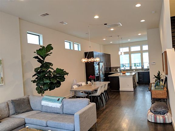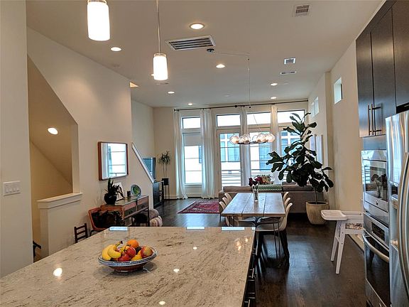 NEVER FLOODED! Well designed TH with fenced backyard. Controlled access to the property. Spacious, HIGH ceilings, balcony, His & Hers Walking Closets, Top Roof Deck with Downtown View! Property has full access to a private gated community park near by (10 seconds walk!) (See Photos) Arty area with coffee shop, restaurants, Exhibitions, Pedestrians/Bike Trail. The Heights are near by as well! Come and see! Sellers had just the paint redone for you. Washer, Dryer, Fridge, Wine Cooler Stay!