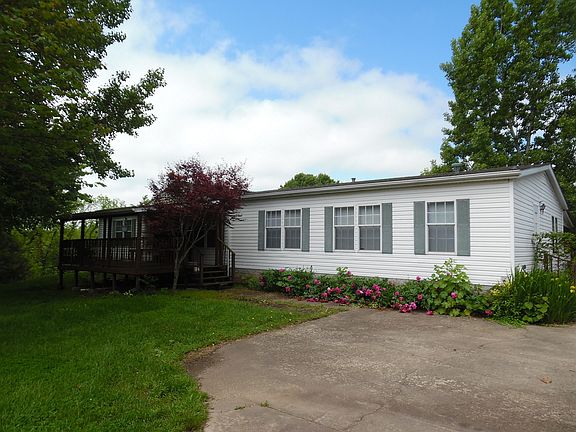 Very well maintained doublewide on a permanent foundation. Has new roof on home and garage. New central heat and A/C heat pump. Newer appliances. Beautiful landscaping. Screened on rear deck area for outside enjoyment. Concrete driveway with large detached 2 car garage. All tis and more sits on 21/2 acres.