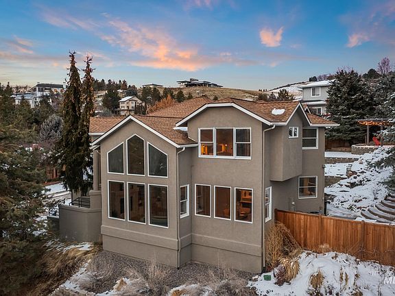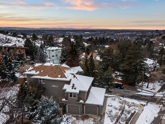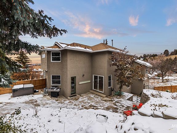 An entertainer's dream home perched on a corner lot in the NE Foothills w/ views of Boise's city lights. This home has been thoughtfully upgraded w/ designer finishes throughout, fully remodeled kitchen & master bath, new interior paint & all new lighting fixtures. The expansive kitchen is flanked by two dining spaces & 2 breakfast bars, kitchen features a gas range, beverage cooler, granite counters, display cabinetry, pantry, & a side by side fridge. Gorgeous hardwoods flow throughout the main level & soaring, 2 story ceilings w/ walls of windows lend to the spacious, cheerful layout. The master features gorgeous tile floors, beadboard accents, a soaker tub & walk-in shower, dual vanities & generous walk-in closet. The .25 acre lot is surrounded w/ lush landscaping, tiered rock wall complete with a waterfall & new fence. Enjoy outdoor living w/ 3 separate patio spaces, including a trellis covered patio, and hot tub patio. Located on culdesac, minutes to Downtown, Table Rock & in premier Boise School Distr.