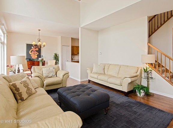 Wonderful location for this stunning townhome with finished basement! Welcoming foyer entrance leads to expansive living room and dining room boasting new flooring & wall of windows and volume ceilings with views of open space behind! Spacious kitchen features new wood laminate flooring, stainless steel sink, newer appliances and pantry closet! Master bedroom suite with vaulted ceiling & beautiful updated master bath-featuring double sink, porcelain tile, double shower! Additional bedroom and spacious loft! newer furnace & AC! Nice patio and attached 2 car garage makes this home a must see!