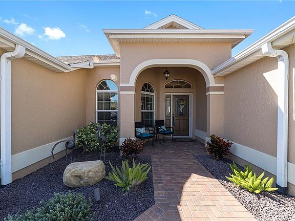 STUNNING DESIGNER GARDENIA LOCATED in the Very popular VILLAGE OF AMELIA!! Short Cart Ride to the Amelia Pool and Mailboxes. Wonderful CURB APPEAL w/ Stone hardscape borders, Rock filled landscape beds, & mature landscaping as well as the CUSTOM PAVERS in Driveway, Walkway, and Backyard Patio! The GLASS LEADED Front Door + matching SIDELIGHT + RETRACTABLE SCREEN + EYEBROW ARCH TRANSOM Welcomes you into the TILED FOYER which transitions to WOOD LAMINATE flooring in combo LR/DR area, 10 ft VAULTED CEILINGS, CUSTOM WOOD CORNISES, CROWN MOULDING, & NO POPCORN. Updated Lighting and Remote Controlled Fans! The STACKED SLIDING GLASS DOORS lead you to the AIR CONTROLLED OFFSET ENCLOSED LANAI w/ CUSTOM SHADES. The Kitchen Boasts CORIAN COUNTERTOPS, TILE BACKSPLASH, CABINETS w/ PULL-OUT SHELVES, Over & Under-cabinet lighting, NEW STAINLESS STEEL APPLIANCES, Large Breakfast bar & a cozy breakfast nook/sitting area! SOLAR TUBES in the Kitchen, Laundry Room, and Master Bathroom. The SPLIT OPEN FLOOR PLAN is perfect for entertaining family & friends. Master BR has beautiful WOOD LAMINATE flooring & DUAL WALK-IN Closets. ENSUITE Master Bathroom Features a TILED ROMAN SHOWER, private water closet, QUARTZ dual sinks/vanities & ample storage. The GUEST WING has a POCKET DOOR for privacy. Bedroom #3 (front BR) with no closet has a Vaulted Ceiling, a Large window for natural light, a multi-purpose room w/ ample space for an office/den/study! The GUEST BATH has a TILED tub/shower combo, QUARTZ COUNTERTOP, 2nd Bedroom also has Vaulted Ceiling & closet. Interior Laundry Room has Washer, Dryer & Extra Cabinet Storage space, and a Tub Sink. The 2 Car Garage has Insulated Door, Automatic Fans, Full House Surge Protection, and PULL DOWN Attic Space for Storage. DID I MENTION THE GOLF CART IS INCLUDED!!