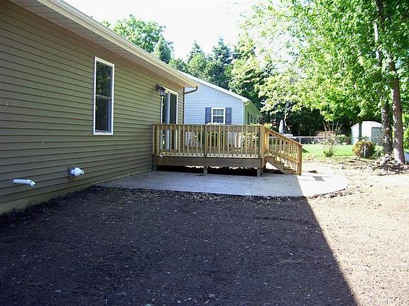 A beautiful, affordable brand new house! Open concept design with the living and dining areas looking toward the private back yard and give access to the deck and stamped concrete patio. Convenient kitchen, main floor laundry and huge pantry. The master suite features a large bathroom and generous walk-in closet. 2nd bath is large too, and the other 2 bedrooms are very comfortable. Spacious entry foyer, too. Hardwood floors in the main living areas with carpeted bedrooms and tiled baths and laundry. Finished entry to the huge open basement, ready for any future plans you may have. The arts and craft style doors and wider base trim give add to the character. Special feature: the window areas in the living room and master bedroom have been built to allow for future patio doors with no re-structuring. APPLIANCES CAN BE INCLUDED.