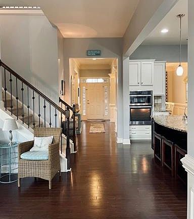 Stunning Greystone plan w/ 5 BR/4.5 BA, Formal DR, study, 1st floor Guest Suite, 10' ceilings, gleaming hardwoods. FULL brick home w/ stone accents. Gourmet open kitchen, 5 burner gas stove, SS appl, granite, walk-in pantry, drop zone. Huge great room w/fireplace. Sunroom overlooking wooded yard. Amazing entertainment space. Large Master walk-in closet. Fenced yard, fire pit, tiled showers, extended patio/driveway. Bedrooms w/ walk-in closets. Huge Bonus room. 3-car garage. Spectacular home!