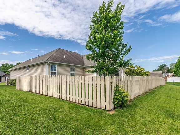 This fabulous ranch enjoys a prime location with convenient access to shopping, restaurants, Highway 41, and Lynch Road. Constructed in 2016, the residence offers an open layout and features continuous laminate flooring throughout the main living areas. A welcoming covered front porch leads into a spacious foyer adorned with chair railing, seamlessly transitioning into a generously sized great room, kitchen, and breakfast nook, all benefiting from vaulted ceilings. The well-appointed kitchen boasts a tile backsplash, abundant cabinetry, a pantry, and a sizable island providing ample seating. This home has been carefully maintained. The breakfast nook provides a view of the enclosed backyard, and a covered back patio is also included. The expansive owner’s suite features a 10 x 5 walk-in closet and an ensuite full bathroom complete with an attractive tiled shower and a raised double vanity. Two additional bedrooms, situated on the opposite side of the home, offer considerable closet space. (one with a walk-in closet) and all with walk-in closets, and Roman-style doors are fitted throughout. Furthermore, an 8 x 12 storage shed is available for additional storage needs. Immediate occupancy is offered.