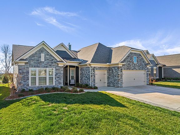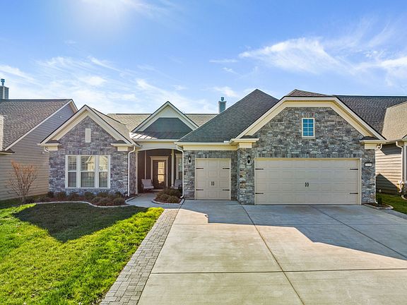 Stunning one level ranch located in Southern Springs 55+ community on a Premium, fenced Lot w/ trees! Upgraded exterior elevation, Hardie board siding, plantation shutters, irrigation, spacious screened-in back patio! Low maintenance LVP flooring throughout. Kitchen features granite counters, huge island, soft-close, pull out drawers & cabinets, built-in double ovens, under cabinet lighting, and a generous sized pantry. Open, Living Room w/ fireplace. 2 sizeable bedrooms -en-suite with solid surface counters + a Den (3rd BR option). Primary bathroom features double vanities and a custom, walk-in tub. Plenty of storage space with extra closets. Expanded 2.5 car garage, Storm shelter, larger driveway with beautiful stone inlay. Like new! Over $100k in upgrades!