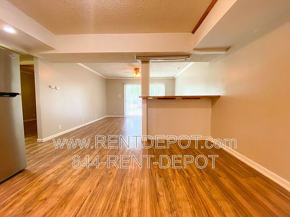 It's all 1 level and located downstairs. The glass slider invites you in to the hardwood laminate flooring and freshly painted walls throughout this apartment. You'll love the spacious, open plan layout with the living room and kitchen. Ample cabinets and a breakfast bar completes the first 2 rooms. There's 1 large bedroom off to the right of the hallway and a large bathroom, with a stand up shower surround and ample lighting throughout. At the back of the home, you'll find the utility room. This area has the W/D hookups and additional storage. Access to the side and backyard is off the utility room. In the backyard, you have full access to the 2 car storage garage. This working garage is outfitted with work benches and floor to ceiling cabinets/shelves, which can be great for additional storage or hobbies/projects. This area is equipped with electric. Parking is out front of the apartment complex. You're just a few short minutes drive from the hospital, shopping, schools, and the rest of the city. Appliances are included with this property. Utilities are not included with this property. Pets are not accepted at this property. Available for rent now.Amenities: