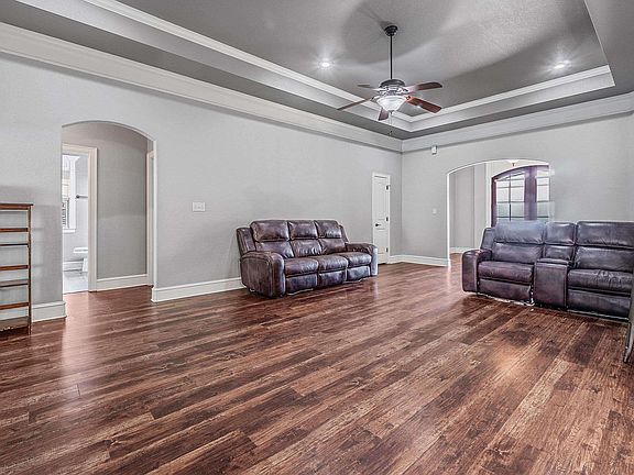 Welcome to this Sherwood Stunner! This beautiful property boasts 4 spacious bedrooms, 2.5 bathrooms, and a versatile flex space upstairs that can easily serve as a 5th bedroom. The primary w/ oversized ensuite is the perfect retreat after a long day. Recent updates include fresh interior paint and a brand-new roof installed in March 2024 w/ a transferable warranty. Enjoy the durability & style of luxury vinyl plank flooring in the living spaces (installed in 2019) throughout the home, and custom blinds that add a touch of elegance. The living room features impressive 12 ft ceilings, creating a grand and open atmosphere. The open dining, kitchen and living room is perfect for entertaining and gatherings. The bonus AC-controlled pantry in the garage offers extra storage and convenience. Relax in the backyard w/ privacy fence and stay cool under the covered patio. Stay connected with CAT5 internet cable, and benefit from the home's excellent location within walking distance to the Jr. High School, with the high school only a mile away. Don’t miss out on this incredible opportunity!