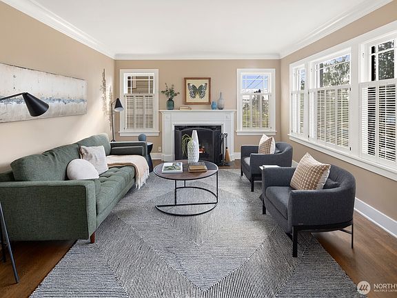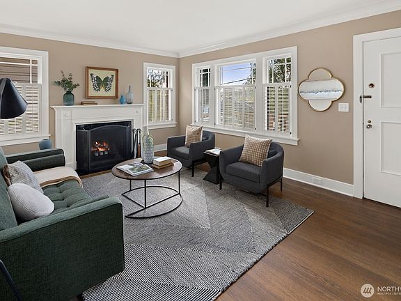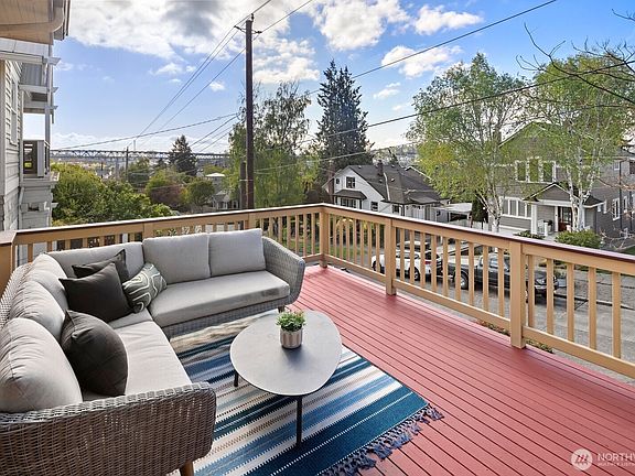 Gracious Wallingford gem nestled in mature gardens with front deck views. Lovingly & meticulously stewarded. 3 bedrooms, 1.75 baths. Generous living and dining rooms. Refinished hardwoods, fresh paint & natural light throughout. Well-designed chef’s kitchen with Carrara marble, ample lighting & tons of storage. Backyard patio, charming gazebo & beautiful landscaping off the kitchen. Large bedroom & full bath round out the main. Upstairs find two bedrooms, one w/ a cute alcove, the other w/ an openable skylight for moon viewing. Basement rec room has fir cabinets, laundry room, built in work area & attached garage. High ceilings on every floor. Friendly quiet neighborhood, stroll to coffee shops, Gas Works, Fremont, bus lines. Welcome home!