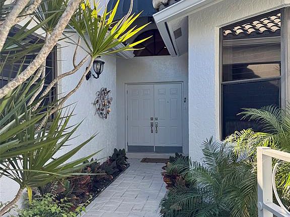 If you've been searching for the perfect one-level home on a quiet tropical interior lot, this is the one! Filled with natural light, this beautifully maintained residence features an open, airy floor plan and a glass-enclosed Florida room overlooking a stunning patio & heated pool, ideal for both relaxation & entertaining. The 3-bedroom layout includes a versatile 3rd bedroom/den & showcases pride of ownership throughout. Additional highlights include a cabana bath, an eat-in kitchen, spacious living room & dining areas, & a generous primary suite w/ 3 closets, two walk-ins. All of this is just a short walk to the clubhouse, offering the best of Florida living. Golf course, tennis, pickleball, spa, gym, restaurants, schools, shopping, & houses of worship. Equity membership is required. Pool heater/AC/Ductwork/Hot water heater/Instant hot are approximately 3 years old. The roof is 2005 & in great condition, w/ 8-10 years of life left.
