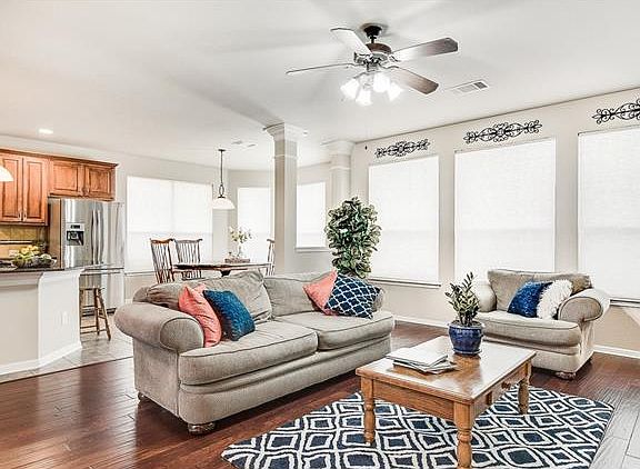 This spacious 5 bedroom home wont last long! Youll be struck by the kitchens gorgeous wood cabinets, granite counter tops & matching stainless steel appliances. Enjoy the natural light from the master suites bay windows. Relax in the garden tub in the luxurious master bath. Come play in the bonus room upstairs, perfect as a game room. Soak up the sun in the private backyard, backing to a greenbelt, great for nature lovers! HOA amenities include a community pool, park, playground & sport courts.