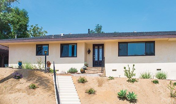 Relax and end your day with this 300-degree California Custom view home. Amazing rooftop views, private gated entrance located at the end of a cul-de-sac, has many upgrades. Decorative stone walkway is just the beginning. Entryway features glass tiled flooring, new smooth coat stucco to the outside of the home, fresh paint throughout the home, recessed lighting and limestone tile flooring in the Dining/Living, Family Room and newly remodeled Kitchen. Kitchen has Kitchenmaid Stainless Steel appliances with glass tiled backsplash and zebrawood cabinetry. Family room has glass tiled fireplace, custom wood is throughout the home in the crown molding, baseboards, window trim, ceiling beams, and kitchen inlay surrounding the recessed lighting. The home includes a decomposed granite drought-resistant front yard and ultra-efficient drip irrigation system that waters the drought-resistant plants and fruit trees around the entire property.Alcott Elementary, Matthew Gage Middle School and Poly High School
