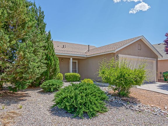 A rare single story 3 Bedroom 2 Bath home in Cabezon. This home has been freshly painted throughout and has new carpet in the living room and all bedrooms. Ceramic tile flooring in the kitchen and dining room, ceiling fans, & vaulted ceilings. The kitchen has a new gas range, 42'' oak cabinetry, breakfast bar & separate dining area /breakfast nook. Refrigerated air. Covered front porch and open patio in back. Great Rio Rancho location. No HOA.