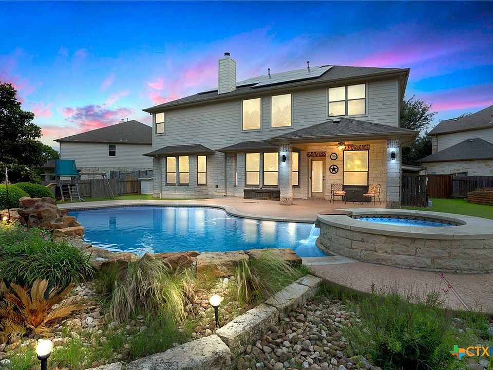 Welcome to Teravista, a vibrant 1500 Acre Master Planned community with varying amenities like the 18-hole public golf course, miles of manicured common space with ponds, bike and walking paths, parks, playscapes, pools, fitness and community centers. Breakdown: Inground Pool & Spa w/Water features * Cul de Sac location * Large .39 Acre Premium Lot * White Texas Stone exterior * 3 Car Garage w/flooring sure to please car enthusiasts * Evening exterior front-Uplighting* No Neighbors Behind for added privacy * Sprinkler System to keep your lawn lush * Security System * Downstairs Master/Primary Bedroom + enSuite w/Garden Tub, Dual Vanities, Private Toilet, Makeup Counter, Shower w/Seat + 2 Shower Heads, Walk-In Closet * Downstairs Formals * Study/Office * Great Room with wall-of-windows and gas Fireplace * Kitchen is Open Concept w/under cabinet lighting, ample Granite counter space, Stainless appliances including 4-burner gas cooktop and double ovens * Upstairs offers 4-well proportioned rooms, 2 full bathrooms (one is Jack-n-Jill), a Game Room open to 1st floor, private Media/Theater Room wired for surround sound. This impressive residence offers a seamless blend of comfort and functionality. The soaring ceilings, an abundance of natural light, oversized gas fireplace and open plan makes for a homey and inviting retreat. The media room upstairs is ready for cozy gatherings and making unforgettable moments. The outdoor living space steals the show w/your own sparkling pool, a spa w/water feature, an extended pool deck, a covered patio, and a large .39 acre premium lot at the end of a private Cul de Sac, adding to the tranquility and seclusion. Even better? The outdoor space is also plumbed and ready for your gas grill! Enjoy the exemplary Round Rock School. It’s easy to retain bragging rights when you live in Round Rock which has been was voted as one of the best places to live in the United States.