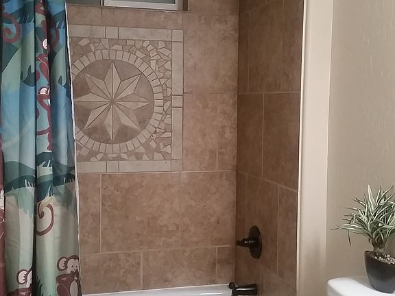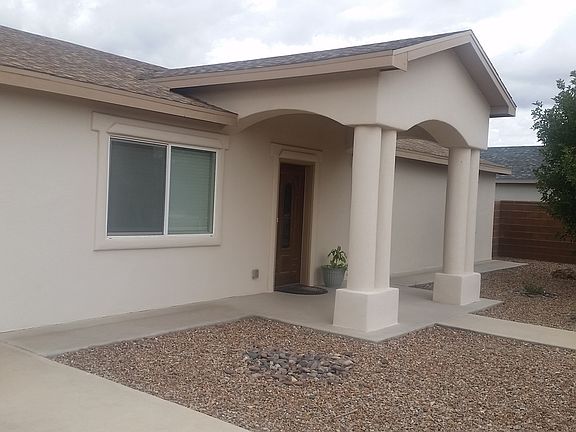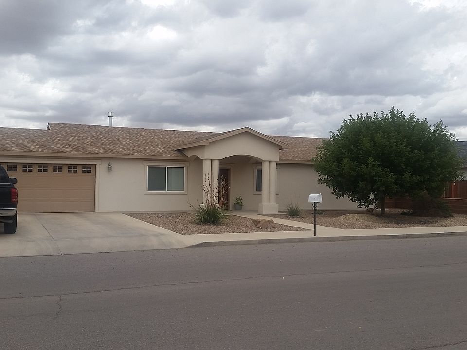 High ceilings, front covered patio, jet tub w/separate tiled shower and bench in Master bath, Master Br w/Tray ceilings, Gas log fireplace in LR, kitchen w/center island and pantry, desert landscaped front yard w/drip system, back covered patio. Stainless Steel appliances are included.