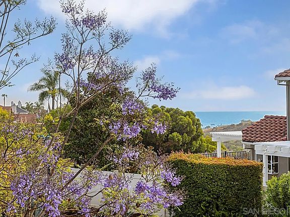 Incredible opportunity to experience the coastal lifestyle in Cardiff by the Sea! Come discover this amazing property with a private location and largest lot in “Cardiff Park” at 7.459 sq. ft, surrounded with beautiful, lush landscaping, brick patio for alfresco dining and possibility to add an ADU. Enjoy white, water views, forever sunsets from the new, trex deck, off the upper, primary bedroom. Step inside to a welcoming open floor plan with natural light and south-west exposure, featuring 3 bedrooms, 3 full bathrooms. Upstairs, you'll find 2 spacious, primary bedrooms with vaulted ceilings, large, walk-in closets, en-suite bathrooms with new vanities, mirrors, fixtures, and resurfaced tubs. Downstairs you will find the convenience of one bedroom with a full bathroom. The home has been freshly painted inside with new bathroom remodeled cabinets, counters and fixtures, LED lighting, new berber carpet, new base molding, refreshed landscaping, new trex deck and Pest clearance provided. Take advantage of the low HOA fees of $290 a month and indulge in the community amenities, including a pool, spa, and BBQ area. Start living the Cardiff lifestyle at the beach!