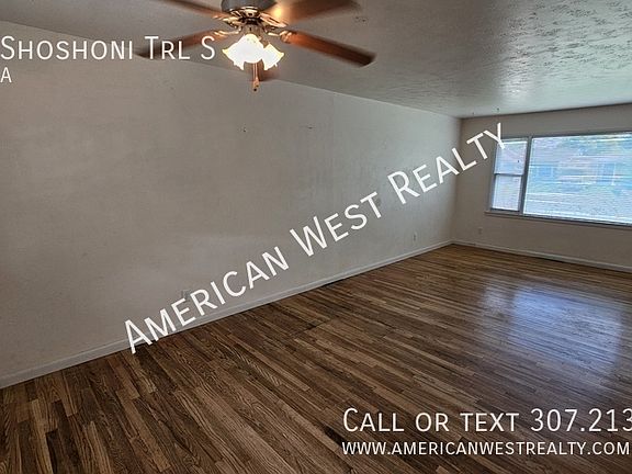 Single-level home with fully fenced back yard and an attached 1-car garage. There is a bonus room behind the garage and a separate garden shed for additional storage space. The living room and dining area combine to give the home an open feeling. The walk-through kitchen includes the stove, fridge, plenty of cabinet space, and hookups for a full-sized washer and dryer. All of the bedrooms have hardwood floors. A full bath is located in the hallway and easily accessible from all three bedrooms. The back yard has nice grass. A single pet is negotiable. Tenants will be responsible for City of Cody and Black Hills Energy. _____________________ Lease Preparation Fee due with your Security Deposit or Holding Deposit. All residents are enrolled in the Resident Benefits Package (RBP) for $46.95/month, which includes renter's insurance, credit building, $1M Identity Theft Protection, HVAC air filter delivery, move-in concierge service, resident rewards program, and more! Learn more at TENANT RESOURCES > APPLICATION AND RENTING POLICY. _____________________ The information presented is deemed reliable but is not warranted. Interested parties are responsible for conducting their own inspection to confirm the accuracy, completeness, currency, and status of all information before renting. _____________________ General requirements: All occupants 18+ must apply and be approved $30 application fee per person Submit a government-issued picture ID Prove combined income of 3x monthly rent To see our most updated list of rentals or learn more about our screening process, visit the American West Realty and Management website. _____________________ INVESTORS: are you looking for professional property management or a sales agent? Contact American West Realty and Management today to learn about our services! Ceiling Fan Dog Kennel Or Run Fencing Fully Fenced Flooring Hardwood Garage Heat Forced Air Kitchen Refrigerator Kitchen Stove / Oven Parking Assigned Shop Or Work Space Storage Shed Utility Black Hills Energy Utility City Of Cody (Water, Electric, Sewer, Trash) Washer/Dryer Hookups