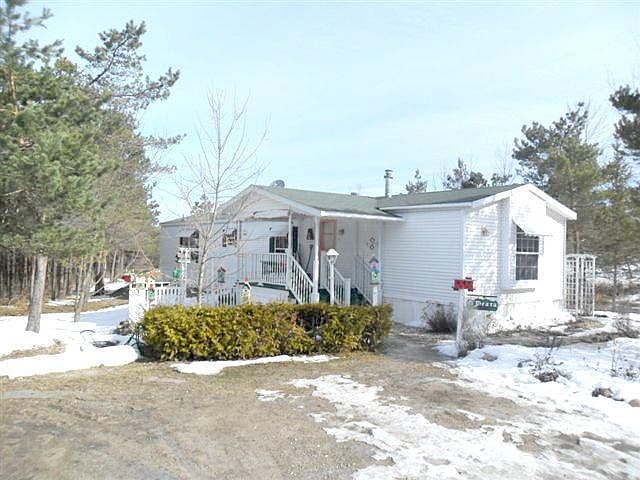 Set back from, and nearly invisible from the road, you you will find this nice 2 bedroom-2 bath mobile home (2000 +/-) with a 24 x 24 polebarn & 8 x 24 lean-to shed, an 8 x 10 covered porch, a 12 x 16 covered deck, a lighted driveway, all on a nicely done 1 acre parcel. (As ground is frozen, no sign yet)