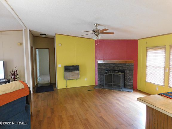 This open plan has a large den, formal dining area and living room. 3 bedrooms and 2 full baths. The metal roof was installed in 2019. There is central heat and air plus a wall heating unit and a fireplace. The kitchen has plenty of cabinet space and a pantry. The laundry room is off the the kitchen and has access to the back yard.