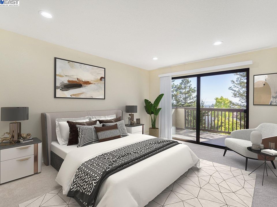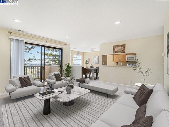 Virtual Tour: https://matterport.com/discover/space/wKf9Mey3Ecr Highly Desirable 3bed 2bath Condo with BAY VIEWS unlike others. Well-taken care of and Upgraded. NO STAIRS TO CLIMB TO THE FRONT ENTRANCE unlike others. Formal Living Room, Gas Fireplace, Indoor Laundry & 2 big balconies with fantastic views with a large storage closet in the main balcony. Kitchen with Custom Hand-Made Cabinets and Corian-Style counter tops, including breakfast bar. Master Bedroom Suite with Walk-In Closet and Bathroom with Custom Tile Work and Expanded Shower. Recessed LED in every bedroom and living room, and LED in kitchen. Covered Parking is Close By and a huge storage unit in the carport, along with 4 Swimming Pools, Clubhouse, and multiple Tennis Courts. Rarely Available. Ideally central to many local conveniences, BART, Highways 238 to 880 & 580, shopping. NEW Carpet and NEW Kitchen Flooring. NEW stove/range oven and NEW Refrigerator.