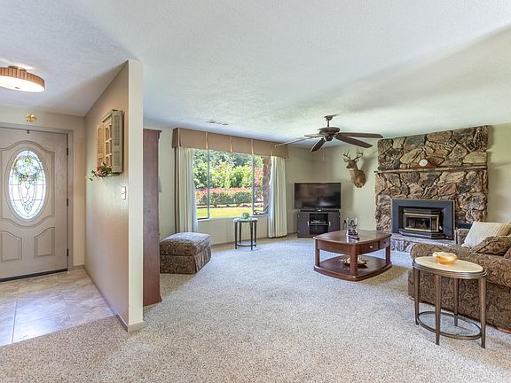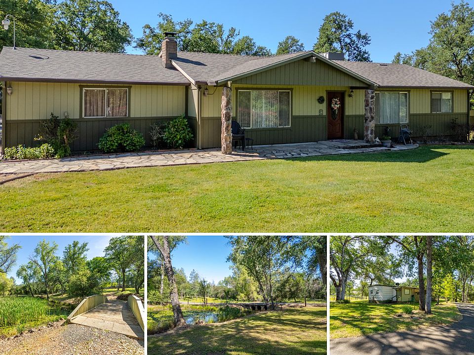 Welcome to your conveniently located country home on 4.12 acres with a brand new roof, POND & SHOP! The kitchen is well equipped with sleek appliances, ample storage space and tasteful countertops, inviting you to unleash you culinary creativity. Both bathrooms have been thoughtfully upgraded. In the master ensuite the main feature is the beautiful countertops & shower surround. A wood deck sits outside the master, as a perfect spot to unwind. The main home has been fire hardened with a brand new roof and newer HVAC system. There is also potential for an ADU! Venture onto your 4.12 acres where you will find lush green lawns, a tranquil pond with a bridge & fruit trees. Lastly, the spacious shop offers ample room for storage. This property ensures every need is met in this country haven!