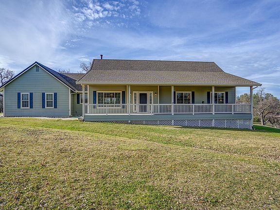 If you are looking for country living but still close to town, this is it! Charming farm style home with front and back covered porches and lovely views in all directions. This home features 11.4 tree studded acres that has been well maintained with pride of ownership. The home is cheerful and bright with many custom features and only one owner. There is a large fenced yard for pets, a seasonal creek for the kids and a 30ft x 54ft metal pole barn for all the toys! Also included is an attached 594 sq. ft. garage.The home is on a raised foundation and has 2x6 construction with Hardi Plank siding. Water is provided by a 270 ft. deep well and the home is on a septic system. Central heat and air plus a whole house fan. The generous kitchen has an island with seating. There is a gas
