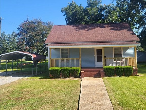 Charming 2BR/1BA home in the Shawmut community is a sight to SEE! House has been updated with LVP flooring in 2020, new HVAC unit & ductwork in 2022. and bath was updated in 2022. Both bedrooms are spacious (one has WIC) and hardwood flooring. Eat-in kitchen has LVP flooring and SS stove and dishwasher to remain. LR features exposed beams and electric fireplace. Large laundry rooms offers up extra storage and work space. Outdoors offers front and covered porches with new railings in front. There are 2 utility buildings and single carport on the property too. All of this located on a corner lot close to shopping, schools, restaurants, and the interstate!