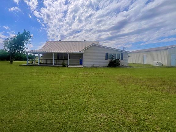 This captivating property sits on 2.41 acres and features three expansive garages/workshops, each equipped with electricity for added convenience. Two of the workshops boast durable concrete floors and garage door openers, offering ample space for projects and storage needs. The large shop has a car lift. The home features a Generac generator and an outside inground storm shelter. Enjoy the peaceful surroundings from the inviting wrap-around porch, perfect for relaxing and unwinding. Inside, the living area exudes warmth with a fireplace and a bookcase, creating a cozy ambiance for gatherings. The remodeled kitchen is a chef's delight, showcasing granite countertops, a built-in microwave, a gas stove with a 5-burner cooktop, and a self-cleaning convection oven. Additional features include convenient pull-out shelves, pull-out trash bin, and a spacious walk-in pantry for storage. The master bedroom offers a generous closet for organization and a beautifully remodeled jack and jill bathroom with a luxurious shower. Additionally, the office area features a large closet and built-in shelves, providing versatility as a potential third bedroom or a functional workspace. This property combines comfort, functionality, and style, making it an ideal retreat for those seeking a blend of modern amenities and serene surroundings. Selling As Is