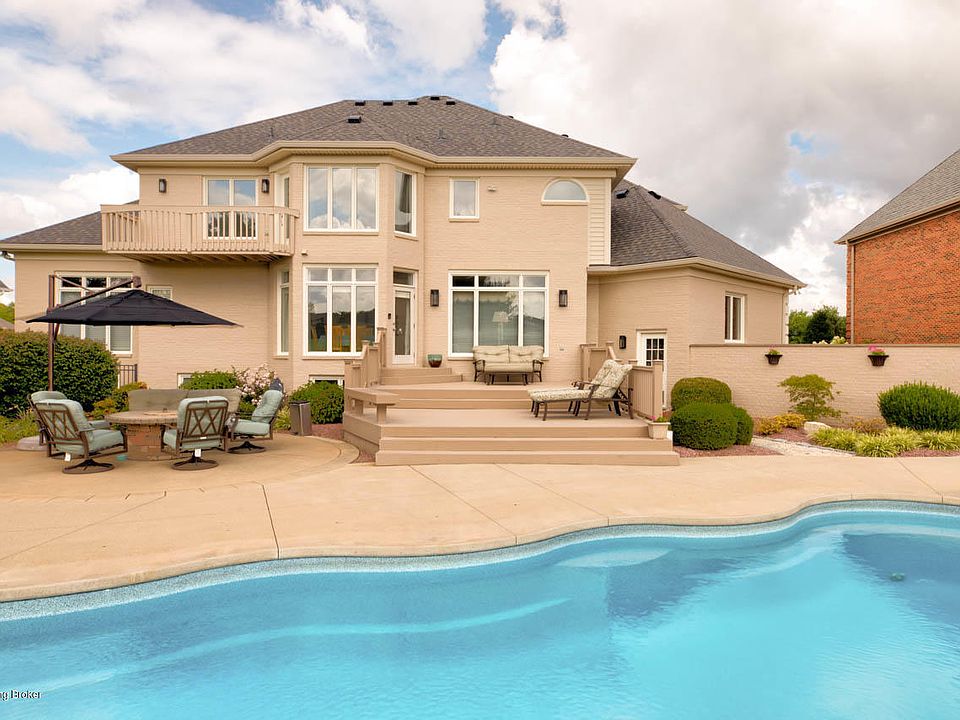 GORGEOUS FORMER HOMEARAMA HOME is located on one of the most prestigious golf courses in the Louisville area. The Arnold Palmer Golf Course in Lake Forest. The owners have done a remarkable job bringing this home back to life. the stunning fixtures and updated colors are everyones passion right now. The GOURMET KITCHEN HAS A BAY EATING AREA WITH GOLF COURSE VIEWS and stunning views of your outdoor oasis. Your own in-ground pool, with plenty of decking for entertaining and a fire pit for those cool evenings. The FORMAL LIVING & DINING ROOM could be used as one large gathering space, the FAMILY ROOM is spacious and semi open to he kitchen. The attention to the decorative and well crafted woodwork is very eye catching throughout the entire home. The first floor is finished off with a office space with glass French doors and a large laundry area with a spacious mudroom area. The second floor has a HUGE MASTER suite WITH WALK-IN CLOSET, PRIVATE BATH & BALCONY. FINISHED LOWER LEVEL WITH FULL WINDOWS, FAMILY ROOM, BEDROOM, WETBAR & FULL BATH also a entrance to the garage from the lower level is always a bonus. EXTENSIVE LANDSCAPING, DECK & MANY UPGRADES & EXTRAS. The outdoor space that many are having to wait two years to enjoy is all yours right now with a beautifully updated home on the golf course in sought after Lake Forest. This home truly has it all.