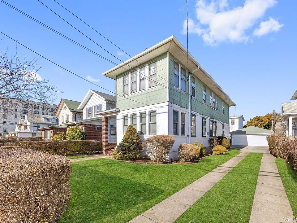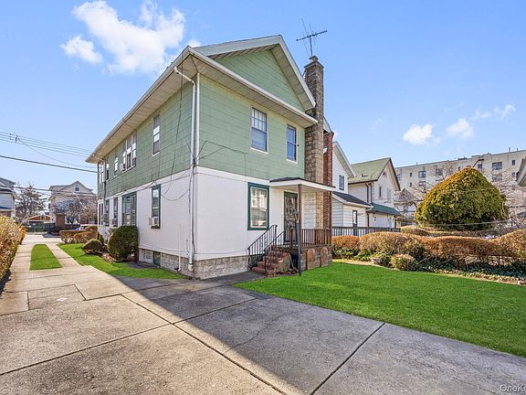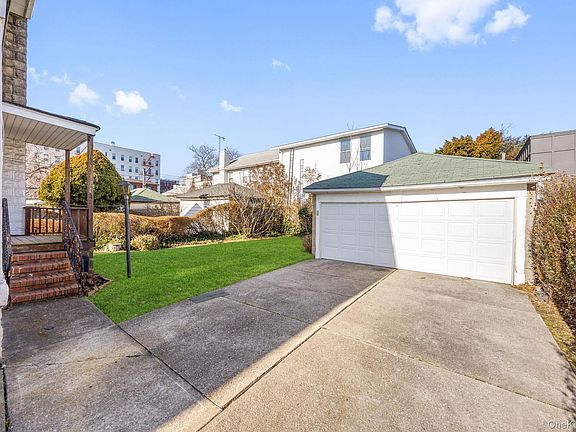 The property is a 2 story plus full basement two-family house. The site includes a landscaped front and rear yard, long multi-car driveway and a two-car garage with powered door. The first floor layout features an eat-in kitchen, full bathroom, formal dining room, living room and two-bedrooms. The second floor layout features an eat-in kitchen, full bathroom, formal dining room, living-room and two bedrooms. Recent upgrades include a new power garage door mechanism. The basement is unfinished and features a separate side-door entrance and interior entrance. A private entrance hall services the main entrance to both units. Layout is ideal for end-users and investors. Location is close to bus, subway, school and shopping.