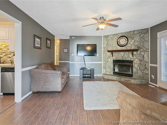 Wonderful Starter Home!!! This 3 bedroom/2 bath home is situated on a cul-de-sac in a quiet well developed neighborhood. This home features luxurious wood grain vinyl flooring throughout living area, a stone surround fireplace for peaceful evenings by the fire, a large eat-in kitchen with stainless steel appliances and a rolling island. Enjoy the outdoors on your covered front porch or the back deck over looking the large back yard. Located within minutes of Fort Liberty and all area shopping and restaurants. A New Roof was placed on the home in 2019 and New Windows installed in 2022. Don't miss out on owning this beautiful home that is move-in ready and just waiting for you!