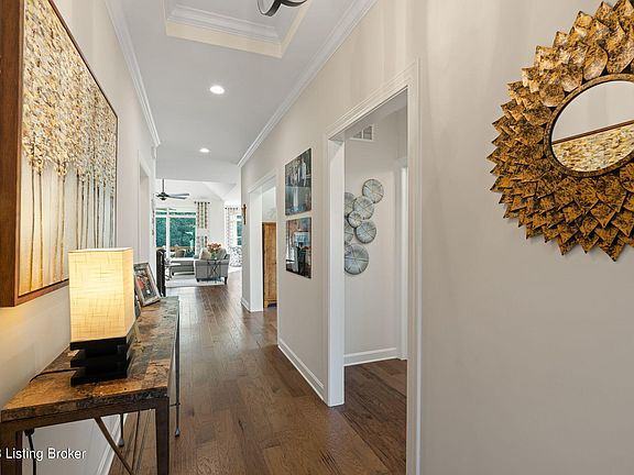 Like new home in Villas at Floyds Fork! Originally built in 2019, the home is located on a premium lot backing up to Floyds Fork and includes many upgrades throughout. Upon entering the home, you are greeted by a spacious foyer that leads you into the open concept main level that includes the living room, dining area, and kitchen all overlooking the spacious backyard. The living room includes a gas fireplace that enhances the coziness of the room, with built-in bookshelves flanking each side. Just off the kitchen is a café area. The kitchen has stainless steel appliances with a gas cooktop and an island with prep sink and bar stools. Off the cafe area/living room is a deck that overlooks the back yard and Floyds Fork and is an excellent place to relax. The primary suite is conveniently located on the first floor with an upgraded en-suite bath and walk-in closet. The finished lower level includes a large family room area as well as a bedroom and full bathroom. The spacious backyard extends to Floyds Fork and the property includes an irrigation system. HOA fees also cover all lawn & landscaping maintenance to include irrigation, mowing, fertilizing, etc.
