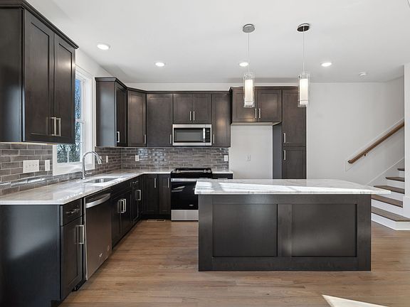 Convenient second-floor laundryStylish tile backsplashStainless-steel appliancesAttached one-car garageDramatic vaulted ceilingsGleaming granite countertopsPremium hardwood flooring