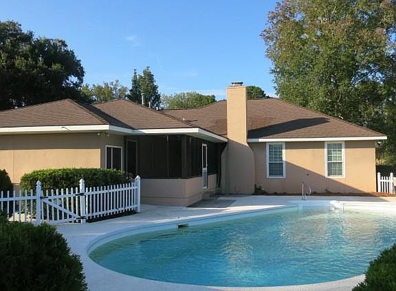 NICE HOUSE WITH POOL AND DOCK ON A 54 ACRE LAKE. HOUSE HAS 3 BEDROOMS, 2 FULL BATHS, FORMAL DINING ROOM, LAUNDRY ROOM, LIVING ROOM W/FIREPLACE, NEWER AIR CONDITIONING UNIT, WOOD AND TILE FLOORS IN MAIN LIVING AREAS. PATIO AND PORCHES, 2 CAR GARAGE. THE HOUSE HAS A LARGE FRONT & BACK YARD WITH SEVERAL MATURE TREES. THE BACK YARD HAS A VINYL FENCED IN POOL & DOCK ON THE LAKE. A QUITE NEIGHBORHOOD THAT IS CLOSE TO SHOPPING, RESTAURANTS, I-95 AND MINUTES TO THE FEDERAL LAW ENFORCEMENT TRAINING CENTERS (FLETC) BACK GATE.