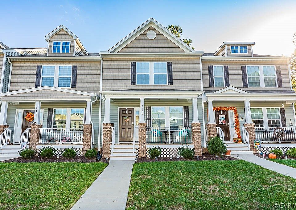 This 2021 built charming two bedroom townhouse in beautiful Kennington awaits its next owner! Just steps from the lovely community pool and playground, you will find 2109 Chaucer Ct. As you approach you will be quick to note the charming front porch. Perfect for a morning coffee on a crisp autumn day! You enter the home into huge open concept living room. This charming space is certain to be the center of the home. It opens to the dining spaces and spacious kitchen with stainless steel appliances and a large island. There is also a half bath on the first floor. Head upstairs where two spacious bedrooms and bathrooms await. Your primary suite is a charming oasis where you can escape the stresses of the day. Please note the gorgeous designer wallpaper in the guest bedroom. All of this just 5 minutes from groceries and restaurants and 20 minutes to Mechanicsville. Make your showing appointment today.