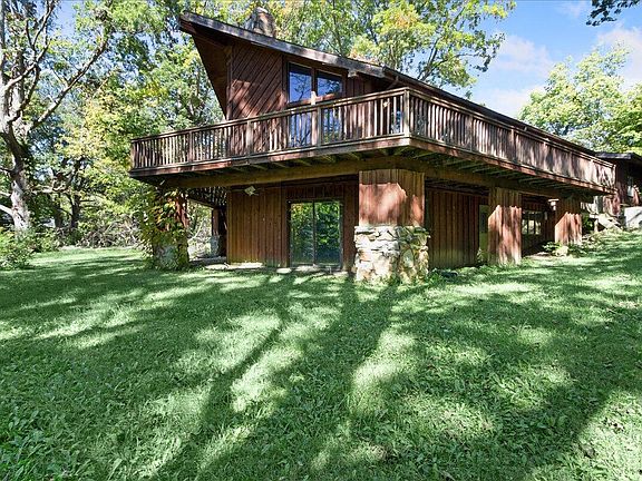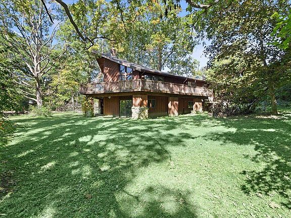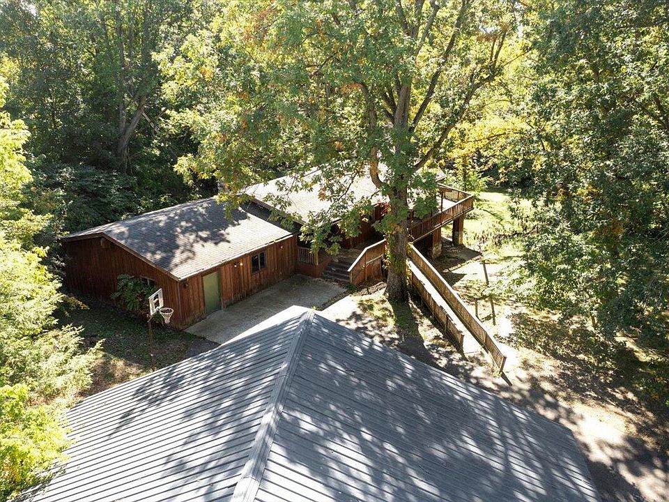 Total seclusion! Check out this amazing 9.87 Acre wooded setting. The long winding driveway leads you to this lovely home built in 1997, featuring 3 bedrooms, 2 full baths, stone fireplace and wraparound porch! The main floor offers an owner's suite with open floor plan with vaulted ceilings, the lower walk-out level offers 2 additional bedrooms, laundry room, full bath and 2 family room areas and a wood burning stove. Other features include a 32x22 animal barn and a newer pole building with a 2nd story finished room and garage opener. Needs some TLC. Call today for your private tour!