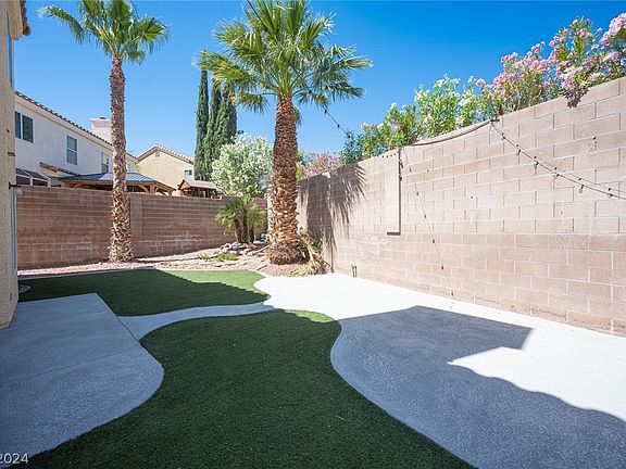 Fantastic Summerlin The Hills location with great schools and nearby restaurants/shopping. This 3 Bd, 2.5 Ba home offers great upgrades including travertine flooring, carpet, custom paint, and synthetic grass in backyard. Stainless steel appliances and open floorplan throughout! Beautiful backyard with mature landscaping!