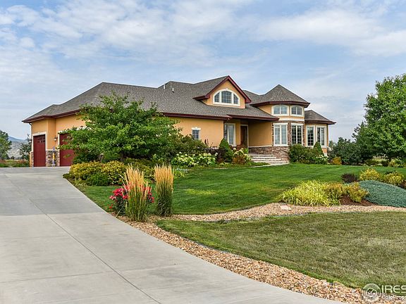 Stunning, professionally landscaped, custom ranch home located in Paradise Valley Estates. 2.75 ac lot backs to open space offering continental divide views including Longs Peak. Near the regions 1st TPC golf course at Heron Lakes. Wide open floor plan with gourmet kitchen including 2 large granite islands. Special features: 15 ft. vaulted ceilings, cathedral height windows, unique artisan tile and walnut flooring. Convenient location for commuting to all Boulder and Larimer County destinations.