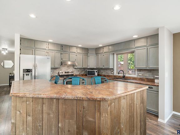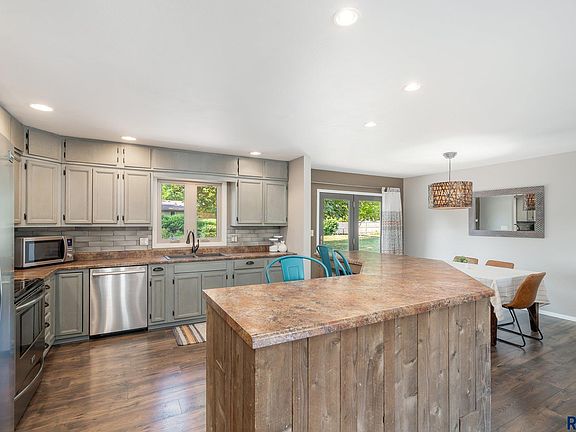 Open house cancelled!! Welcome to this quaint home in the highly sought-after neighborhood of SE Sioux Falls, just moments away from charming Tuthill Park. This 3-bedroom, 2 bathroom gem has been meticulously updated & is right on trend. You will be impressed by the open floor plan, where the kitchen, living & dining room seamlessly flow together, creating the perfect space for entertaining. The kitchen is a delight, featuring a spacious island & an abundance of cabinets.The primary bedroom is a retreat, complete with an updated bathroom. The lower level features a cozy family room with an extra nook & a brick fireplace. Don't miss the heated garage! The incredibly large backyard is a showstopper... it's fenced, has a large stamped concrete patio, & beautifully established trees. It's perfect for hosting summer barbecues or simply relaxing! This home not only offers a fantastic living space but is also nestled in a great neighborhood with excellent schools.