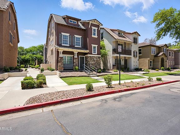 Spacious 3-story condo featuring a first-floor bonus room, laundry with washer dryer, and half bath with direct garage access. Second floor includes an open kitchen, family room, two secondary bedrooms, and a full bath. The third floor offers a large owner's suite with a full bath, walk-in closet, and sitting area. Tile flooring in common areas and carpet in bedrooms. The kitchen has a unique layout blending style and function. Community amenities include pools, greenbelts, playgrounds, basketball, BBQs, ramadas, and security. Minutes from Sky Harbor, ASU, freeways, shopping, and sports events. Great opportunity!