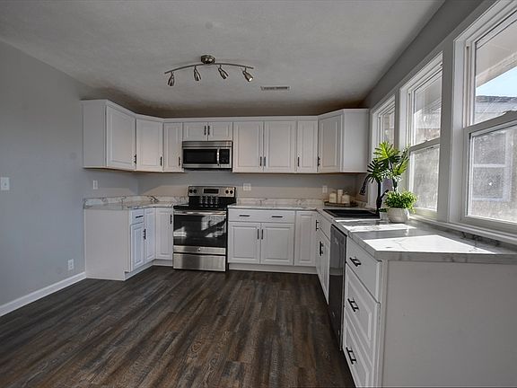 Brand new renovated brick ranch home. This 4 bedroom 2 bathroom home offers all new flooring, HVAC system, plumbing and more! The kitchen boasts new cabinets, countertops, appliances, hardware, and fixtures. It also includes an eat-in kitchen! The living room offers brand new windows that lets in beautiful natural lighting to the space. This home offers a large master bedroom boasts an on-suite master bathroom and a spacious walk-in closet. Make your way out to the partially fenced in backyard for more entertaining space. This home also offers a detached two car garage and so much more! Everything is new in 2020 and home was taken down to the studs. Don't miss a chance at this one!