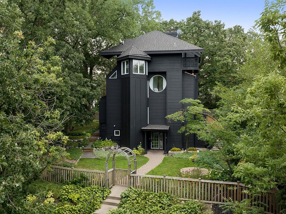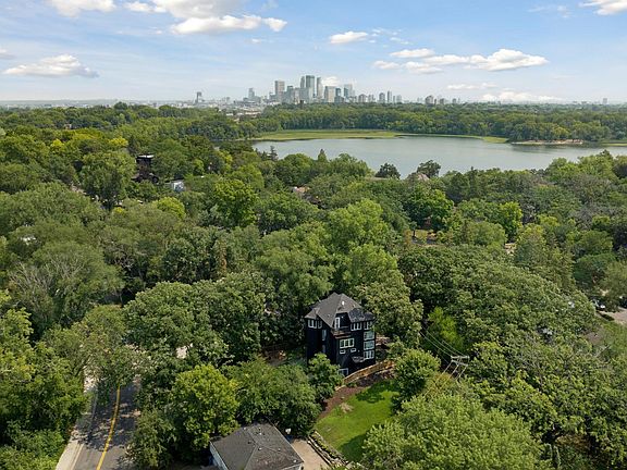 Indeed a one-of-a-kind modern masterpiece perched high on a quiet 1/4-acre property surrounded by tiers of lush gardens, & stunning nature views. Truly an architectural gem built in 1990 w/ continuous renovations throughout the years. Its handsome dark exterior, "north woods" feel & serene, retreat-like oasis will attract true naturalists. With Cedar Lake & its trails practically in the backyard, this location is perfect for active outdoor enthusiasts. Steps lead to four modern levels of aesthetic genius featuring a white color palette, wood beams accented throughout, prefinished walnut hardwood, heated ceramic tile & a coastal flare of turquoise carried in each bathroom. Home highlights include a cozy first-level family room/office walk-out, full bath, + laundry room. Second-level open-concept gourmet kitchen/living/dining room. Top-level primary suite w/ deck & gas fp. An add'l 518 Sq. ft above the garage is outfitted perfectly for guests or studio space. ~See it to believe it!