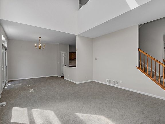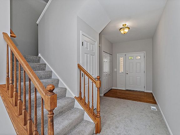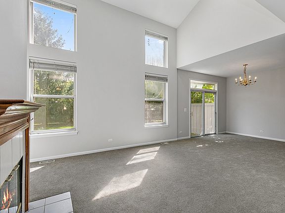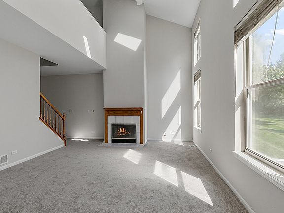 Welcome Home! Freshly painted, new carpeting, white trim & 6 panel doors throughout. Spacious entryway opens to the impressive 2-story living room w/ fireplace, vaulted ceiling, skylights & lots of natural light. Sliding glass doors off the dining room go out to a private patio w/ views of open green landscaping. Nice sized kitchen w/ extra table space, SS appliances & pantry. First floor laundry room. Natural light continues to flood the open 2nd story area that overlooks the living & dining room. Bright primary bedroom has cathedral ceiling, lots of closet space & an ensuite bathroom. The other 2 bedrooms are a good size as well. Full finished basement has a family room, full bath, office or a possible 4th bedroom & lots of extra storage space plus this home has a 2 car attached garage. Come & see this one today!